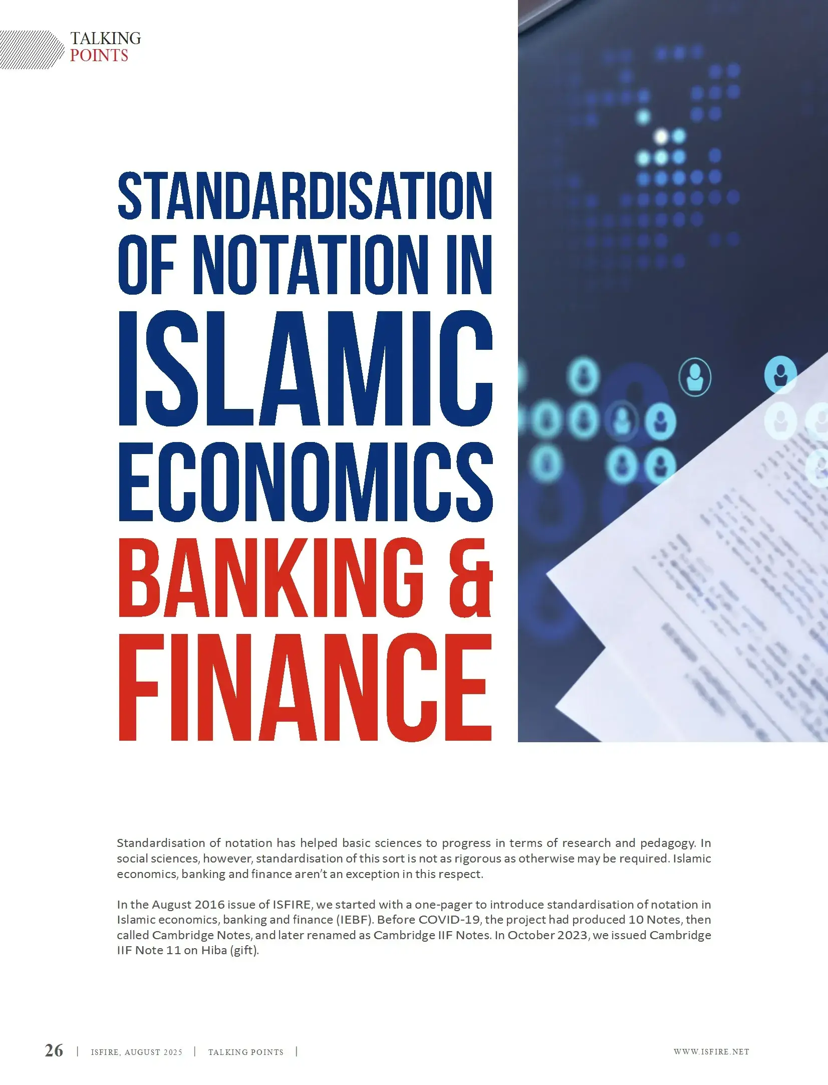 Islamic Finance Review (ISFIRE) is a bi-monthly magazine, produced in a popular style yet retaining authenticity and accuracy of current issues in Islamic banking and finance industry. Among other things, ISFIRE highlights the achievements and success stories of leading institutions and individuals in Islamic banking and finance. As an official publication of Islamic Bankers Association (IBA), it is widely distributed among Islamic banking and finance professionals.