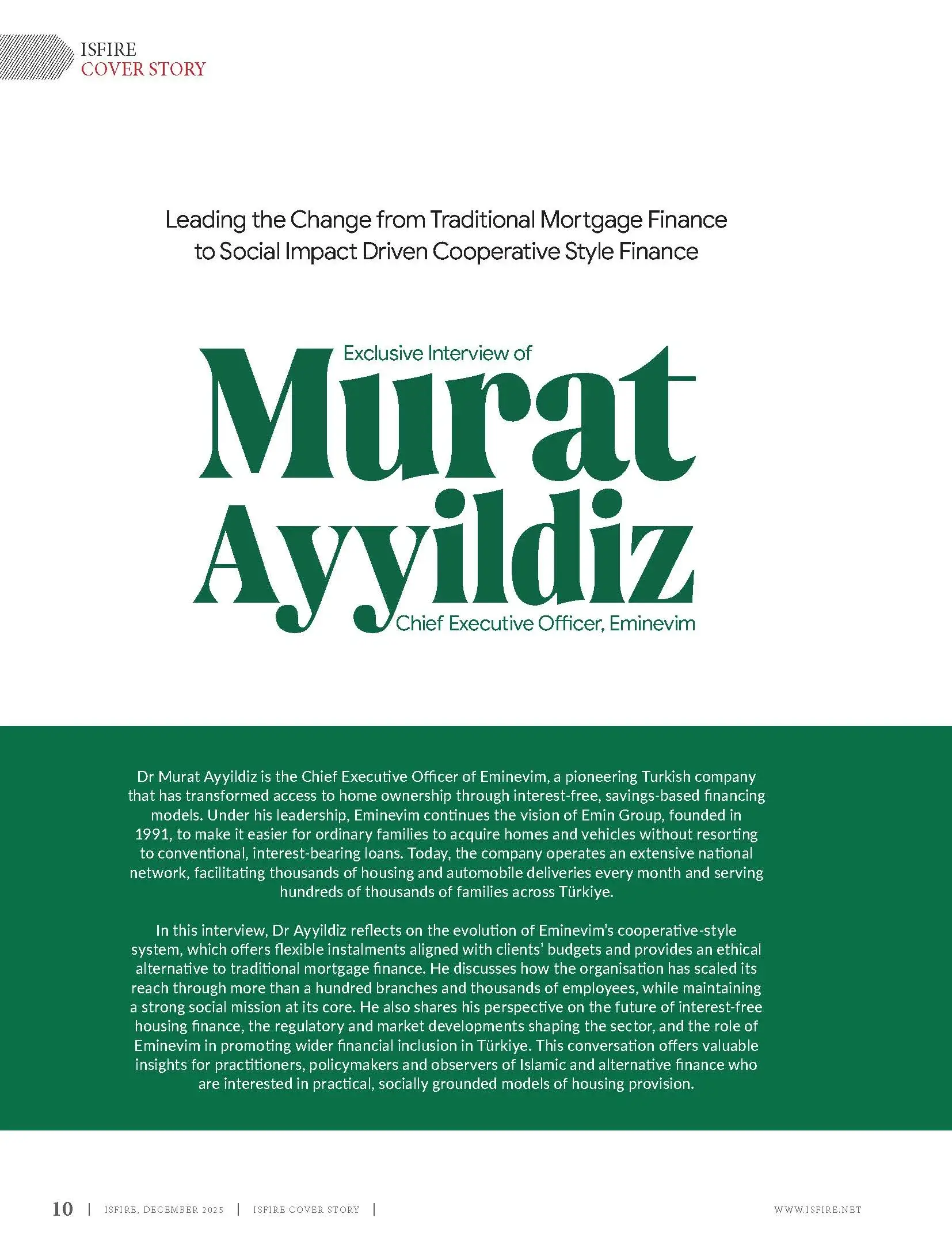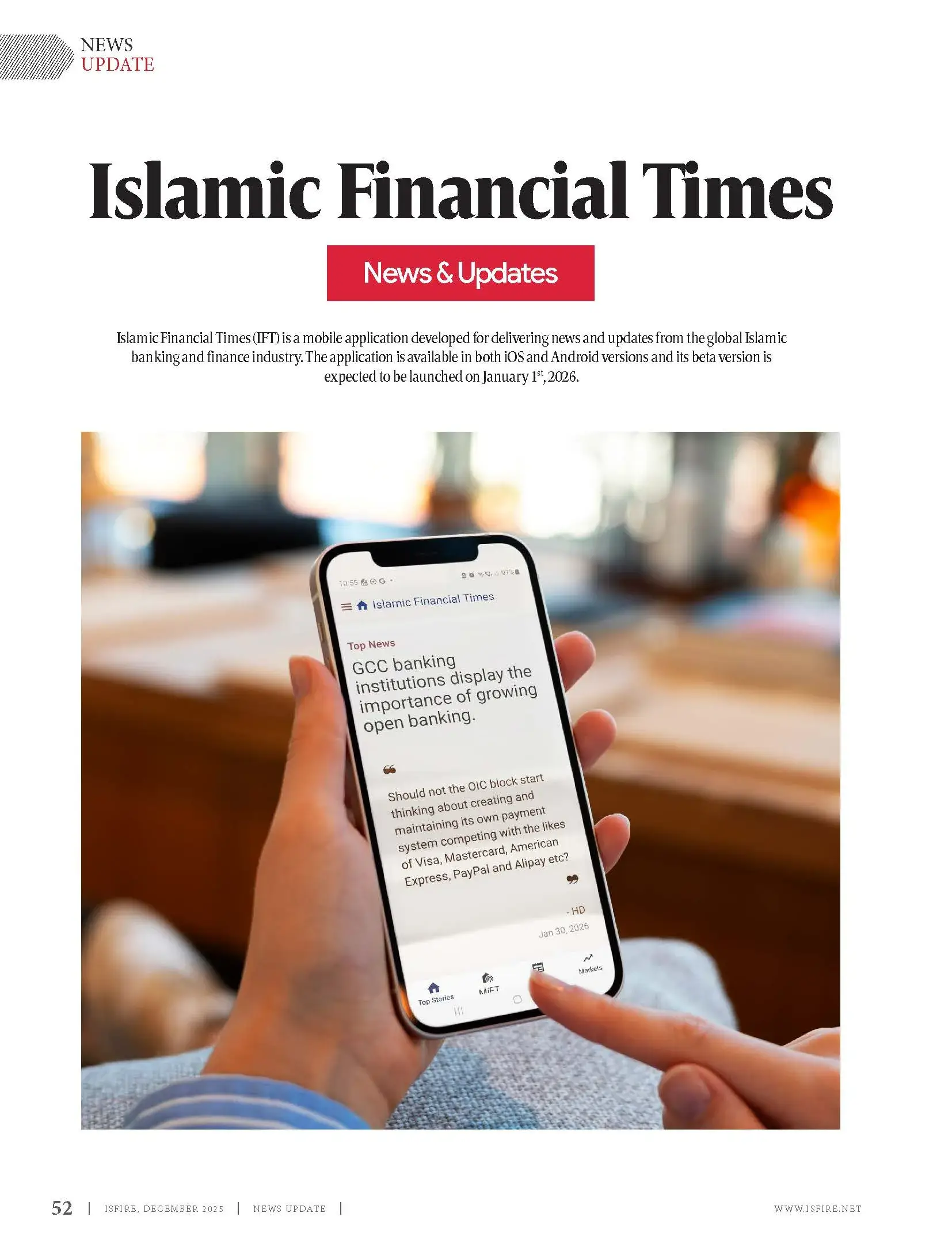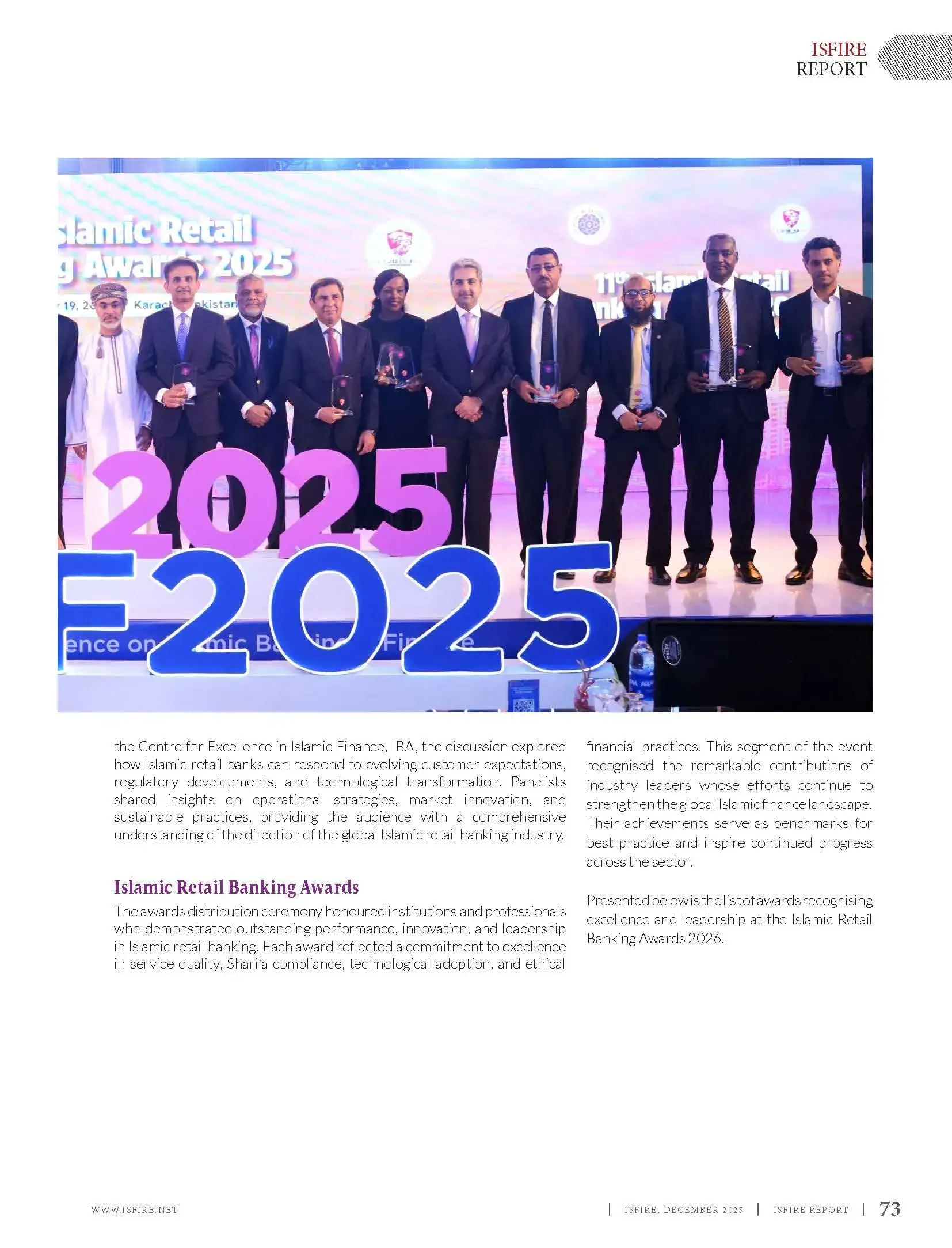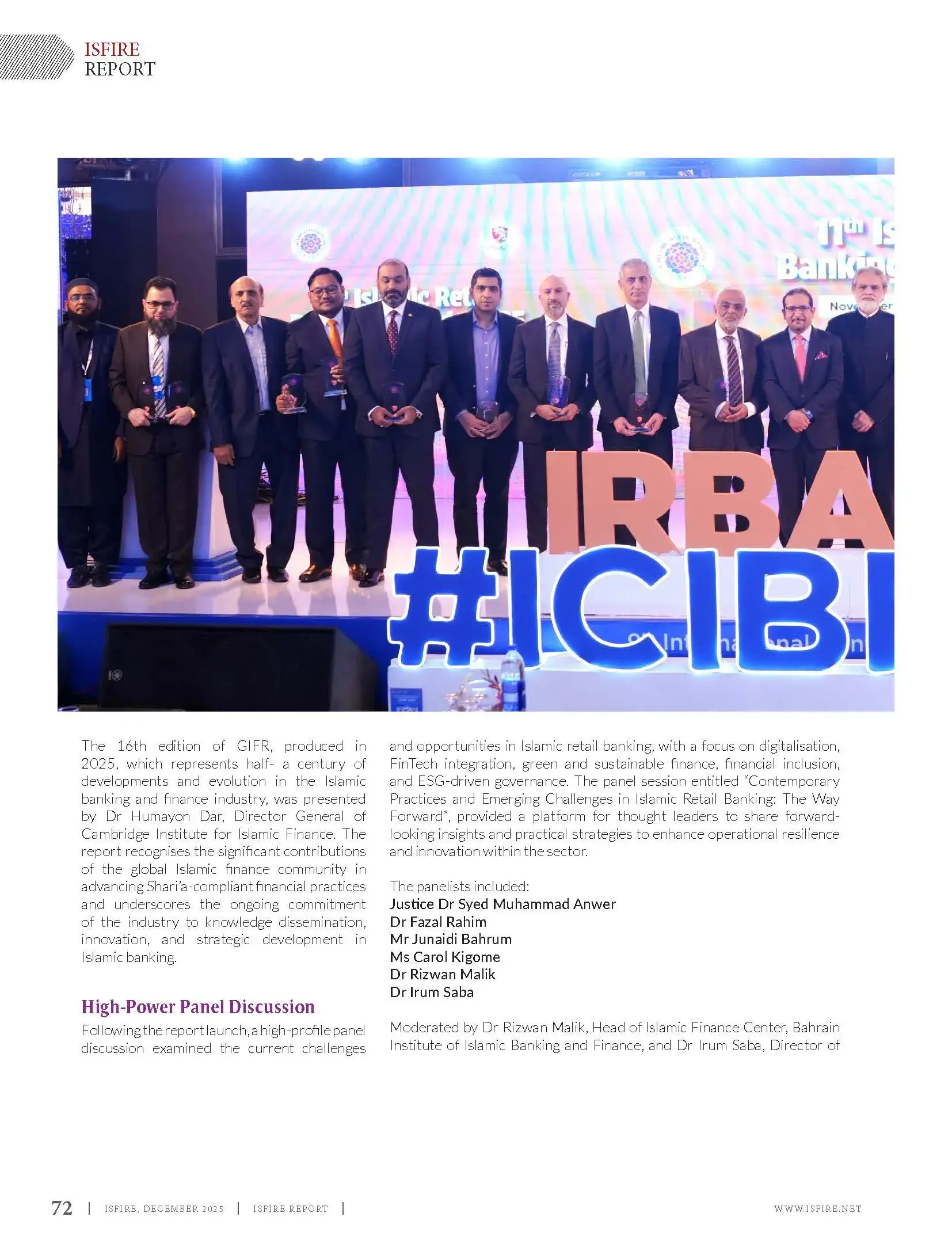 Islamic Finance Review (ISFIRE) is a bi-monthly magazine, produced in a popular style yet retaining authenticity and accuracy of current issues in Islamic banking and finance industry. Among other things, ISFIRE highlights the achievements and success stories of leading institutions and individuals in Islamic banking and finance. As an official publication of Islamic Bankers Association (IBA), it is widely distributed among Islamic banking and finance professionals.